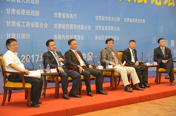 論壇上,隴商聯(lián)合會名譽(yù)會長、新疆大灣房產(chǎn)有限公司董事長李金昌,正大集團(tuán)農(nóng)牧食品企業(yè)中國區(qū)資深副董事長白善霖,分別作為隴商、僑商代表作了主旨演講。在論壇嘉賓對話環(huán)節(jié),由甘肅省社會科學(xué)院院長王福生主持展開了“一帶一路下甘肅的機(jī)遇與挑戰(zhàn)”主題討論,張掖市市長黃澤元,美國康奈克斯實業(yè)公司董事長趙煜,廣東省甘肅商會會長、廣東隴粵投資有限公司董事長李震霄,甘肅泰和實業(yè)(集團(tuán))有限公司董事長、甘肅省陜西商會會長張建忠,中國僑商投資企業(yè)協(xié)會副監(jiān)事長、香港中亞集團(tuán)控股有限公司董事長張福歌作為代表進(jìn)行了“頭腦風(fēng)暴”;由蘭州大學(xué)副校長高新才主持展開了“僑商隴商之與甘肅經(jīng)濟(jì)發(fā)展的功用與引領(lǐng)”主題討論,酒泉市市長都偉,北京甘肅企業(yè)商會常務(wù)副會長、未來四方集團(tuán)董事長瞿金葉,澳大利亞金沙投資集團(tuán)合伙人、總經(jīng)理魏小龍,甘肅辰基實業(yè)集團(tuán)董事長、甘肅省投資商會會長李成勇,民生銀行蘭州分行副行長劉衛(wèi)宏則作為該主題對話代表開展了“思想交鋒”。