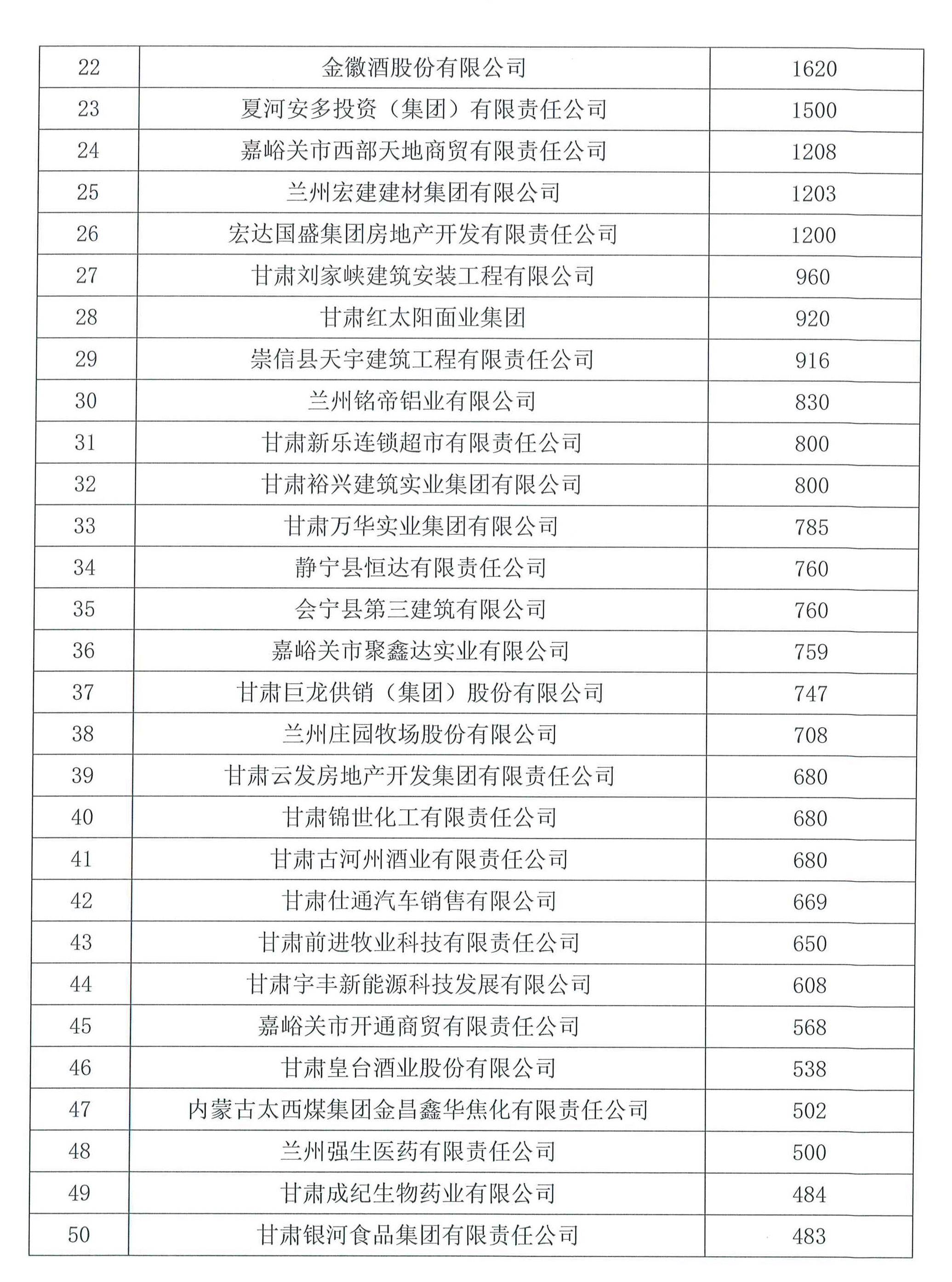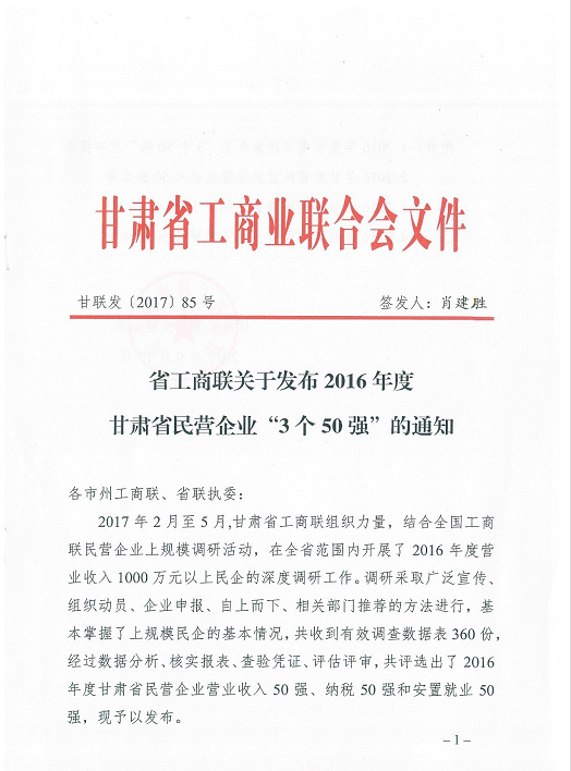 9月15日,在省工商聯(lián)第十二屆一次執(zhí)委會(huì)議上,省工商聯(lián)發(fā)布了甘肅省2016年度民營(yíng)企業(yè)營(yíng)業(yè)收入50強(qiáng)、納稅50強(qiáng)、安置就業(yè)50強(qiáng)“三個(gè)50強(qiáng)”榜單。根據(jù)榜單,甘肅泰和實(shí)業(yè)(集團(tuán))有限公司居2016年甘肅省民營(yíng)企業(yè)營(yíng)業(yè)收入50強(qiáng)第11位,納稅50強(qiáng)第21位。