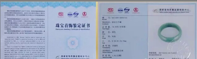 我們的每一只鐲子都是單獨(dú)檢測,由中國最權(quán)威的檢測機(jī)構(gòu)“國家首飾質(zhì)量監(jiān)督檢測中心”出具證書。記住,是單獨(dú)檢測,每個檢測證書有那只鐲子的照片、重量、物質(zhì)含量等;而且有編碼和條形碼,可以去官網(wǎng)上查詢。