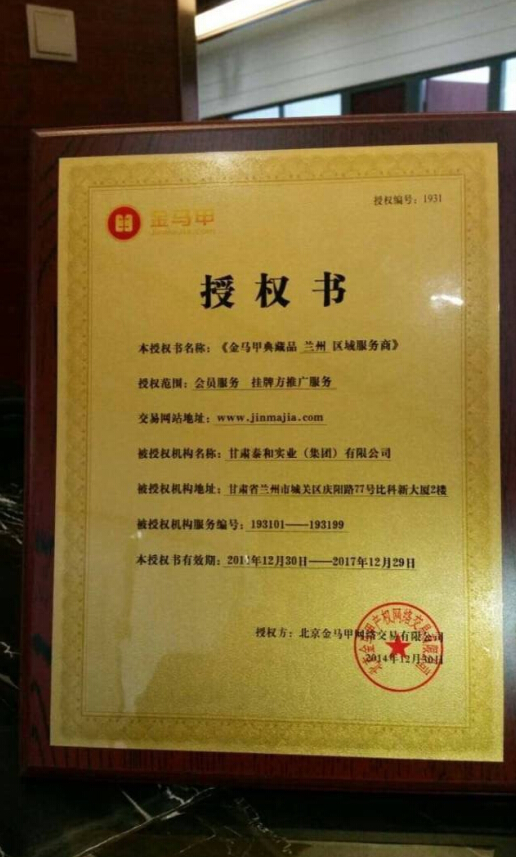 泰和集團成為金馬甲典藏品授權(quán)甘肅第一家一級服務(wù)商!