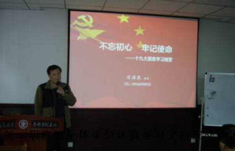 23日下午,研修班全體學(xué)員認真學(xué)習(xí)了西安交通大學(xué)CEO\EMBA公務(wù)員培訓(xùn)課程主講教授、陜西省行政學(xué)院教授、中共陜西省委講師團特聘教授、西北大學(xué)國際商學(xué)院兼職教授蘇源泉講授的題為《不忘初心牢記使命——十九大報告學(xué)習(xí)精要》的課程。