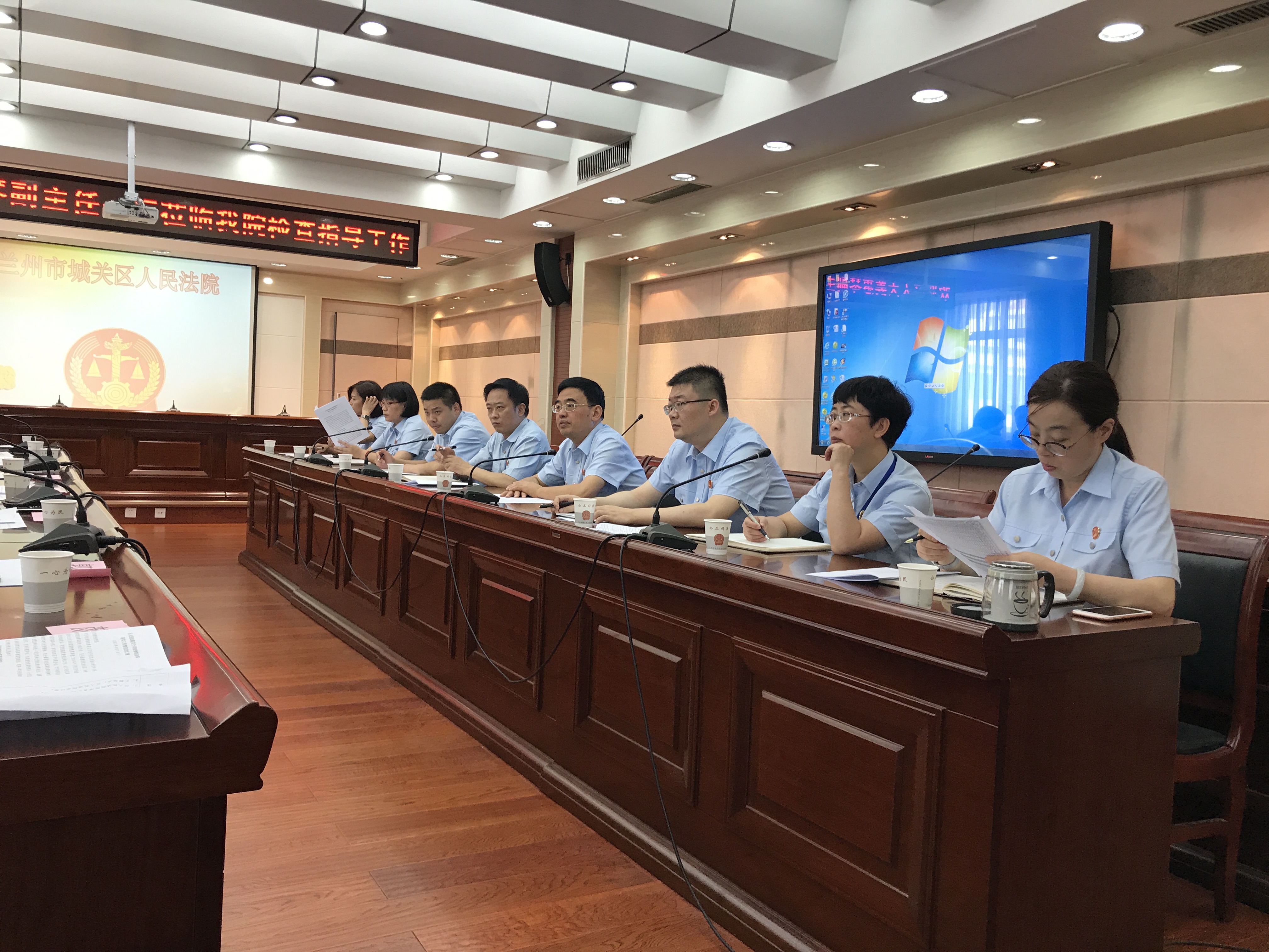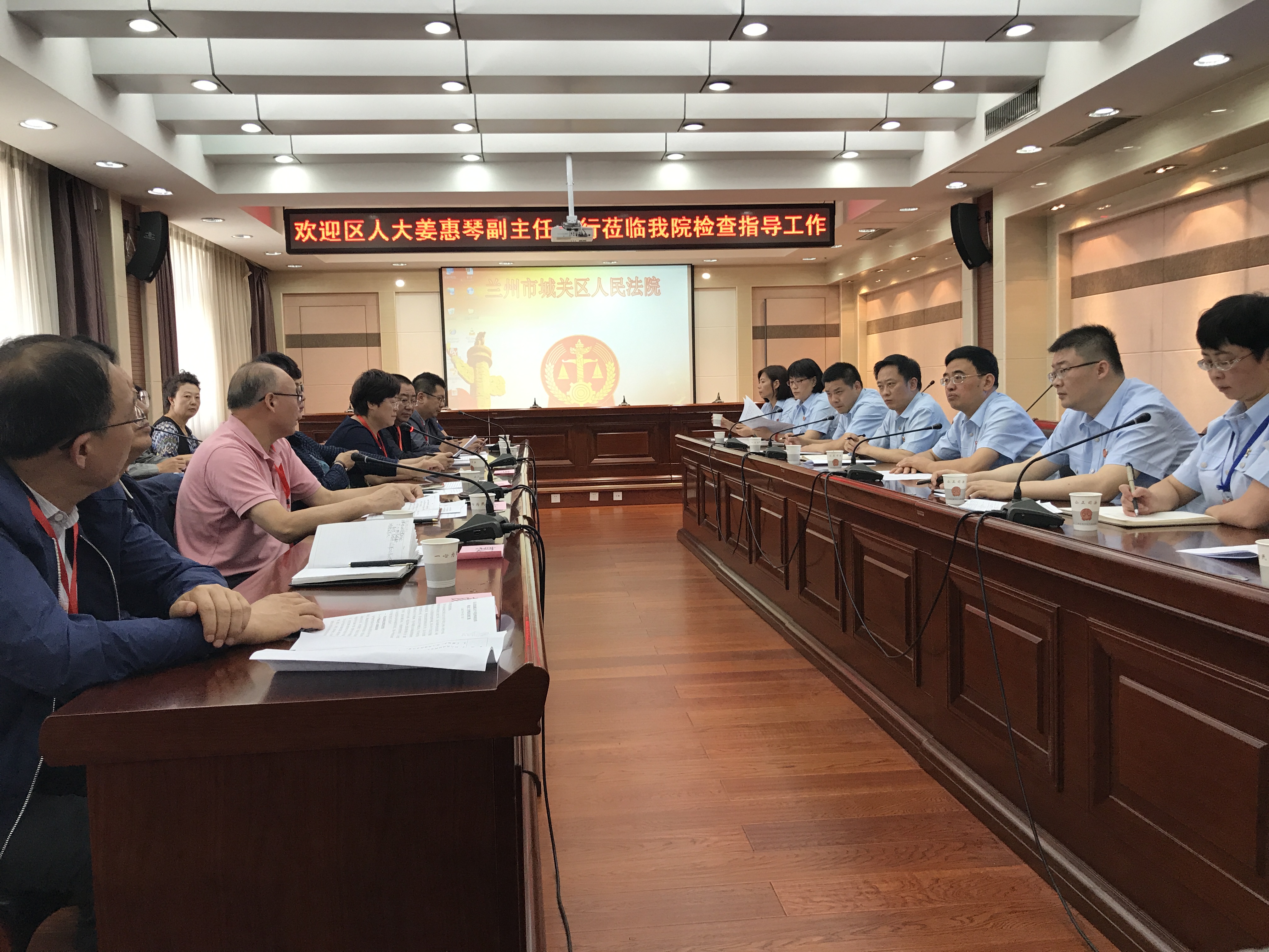 9月7日,蘭州市城關(guān)區(qū)人大常委會(huì),法制委員會(huì)組織市、區(qū)二級(jí)人大代表對(duì)城關(guān)區(qū)人民法院,關(guān)于司法體制改革落實(shí)工作情況進(jìn)行專(zhuān)項(xiàng)檢查活動(dòng)。城關(guān)區(qū)人大常委會(huì)副主任姜惠琴,李春玲,徐安全,楊建中,市檢察院副檢察長(zhǎng)王銳等20名代表參加檢查活動(dòng)。我司領(lǐng)導(dǎo)參加此次活動(dòng)。