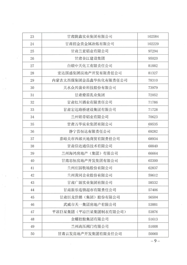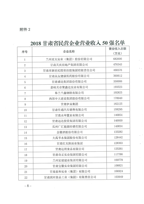 ★ 2018甘肅省民營企業(yè)營業(yè)收入50強榜單 ★
