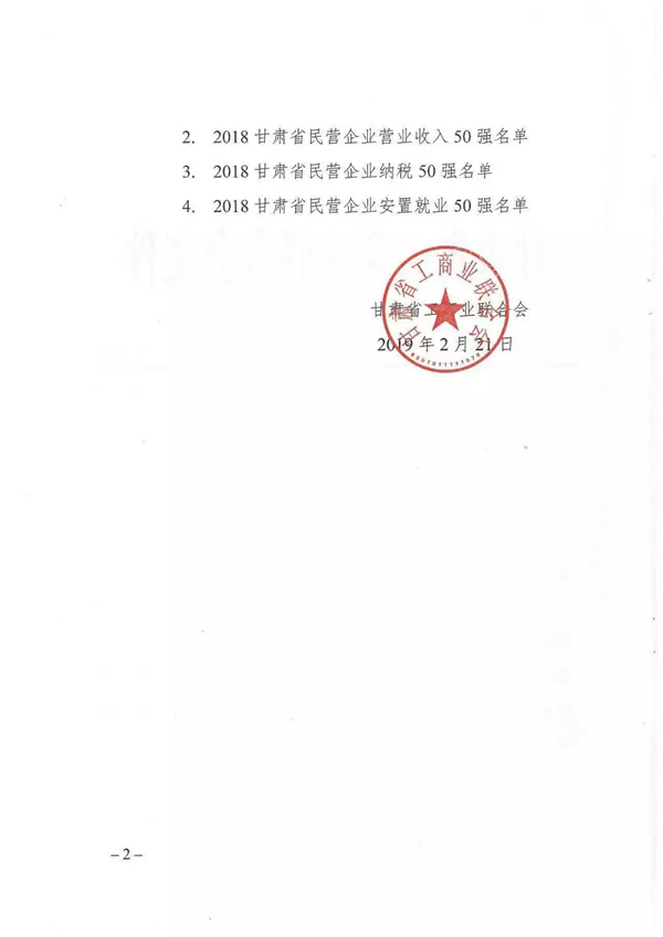 甘肅泰和實業(yè)(集團)有限公司榮登2018甘肅省民營企業(yè)營業(yè)收入50強榜單