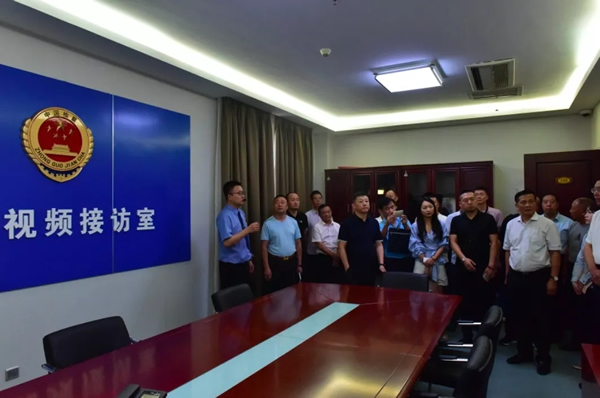 民營(yíng)企業(yè)家們?cè)谑性狐h組書記、檢察長(zhǎng)張學(xué)軍和黨組成員、副檢察長(zhǎng)蒲軍的陪同下,參觀了市院12309檢察服務(wù)中心、案管大廳、新媒體工作室、公益訴訟調(diào)查指揮中心和黨建活動(dòng)中心等檢察辦公辦案場(chǎng)所,現(xiàn)場(chǎng)聽取工作人員演示講解,近距離感受檢察工作流程。代表嘉賓不時(shí)詢問檢察機(jī)關(guān)的各項(xiàng)工作職能,張學(xué)軍檢察長(zhǎng)用平實(shí)易懂的語言詳細(xì)進(jìn)行了解答。